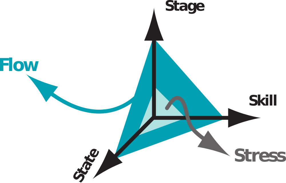 In veranderende organisaties is de onzekerheid vaak extra groot en de werkdruk onverminderd hoog. Door het werken onder hoge werkdruk wordt ons stress-systeem gemakkelijk geactiveerd. Dit kun je terugzien in de afbeelding van de drie dimensies van leiderschapsontwikkeling in de oppervlakte bij “stress” en bij “flow”. Als medewerkers voornamelijk functioneren vanuit hun reactieve patronen, functioneren ze weliswaar redelijk, maar niet fantastisch. Er vallen dan -tijdelijk- belangrijke skills weg. Het verhoogde gehalte aan stress-hormoon begint al snel een negatief effect te hebben op de teamcommunicatie, tevredenheid en gezondheid van medewerkers, capaciteit tot innovatie en creativiteit en dus op de uiteindelijke resultaten van de organisatie.